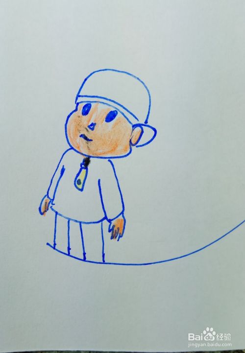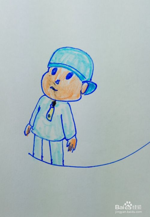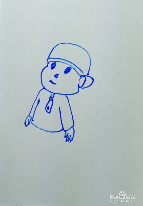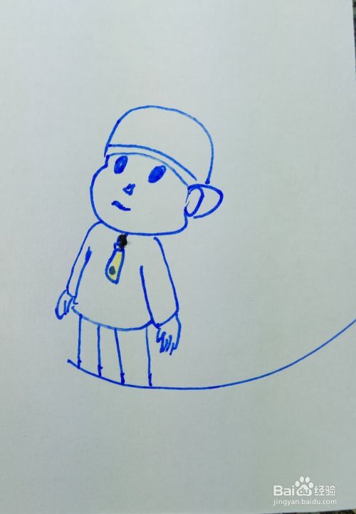 在白纸上用线条和曲线画出小p优优的头部轮廓,并画出他的眼睛,鼻子,嘴巴和头上戴着的帽子。