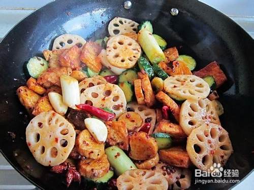 翻炒到莲藕、黄瓜变色出锅即可,用酒精炉或者电热锅煮着吃