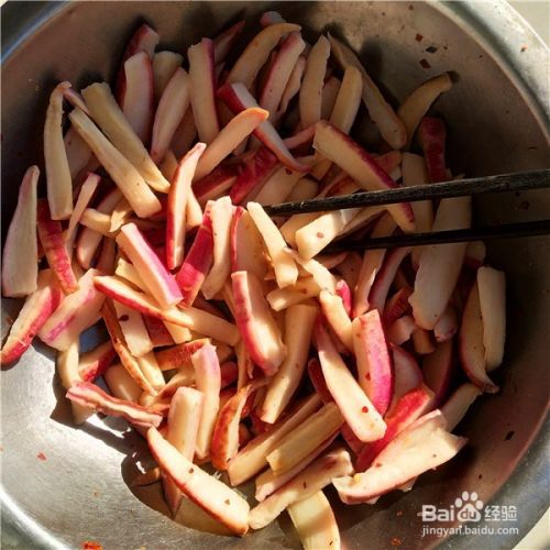 秋天的晴朗天气里晾晒上一天,萝卜条子都皱缩了。加上几勺盐和少许的辣椒粉,充分搅拌均匀腌上一个晚上。自己喜欢也可以加些细的生姜丝。