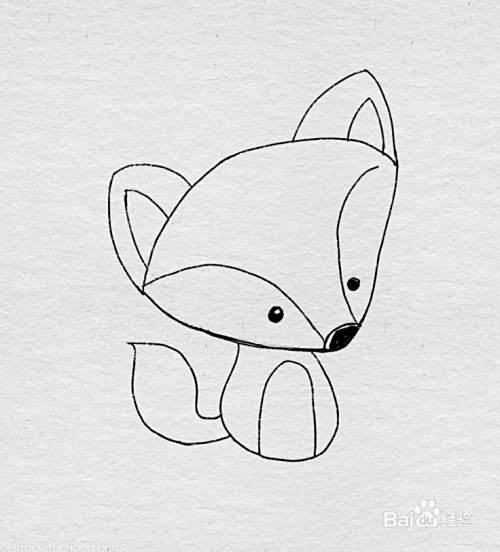 在头部轮廓下方画出狐狸的身体轮廓和腹部轮廓,如图所示。