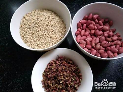 准备调料,花生,芝麻,花椒