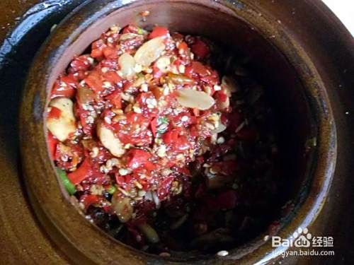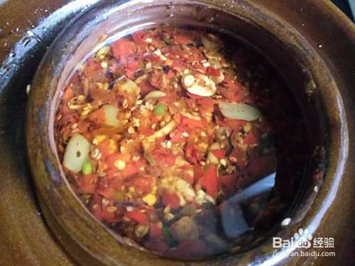 在用一个土坛子洗净,擦干里面的水,一定不要有生水,在把腌制好的豆瓣酱装进坛子里