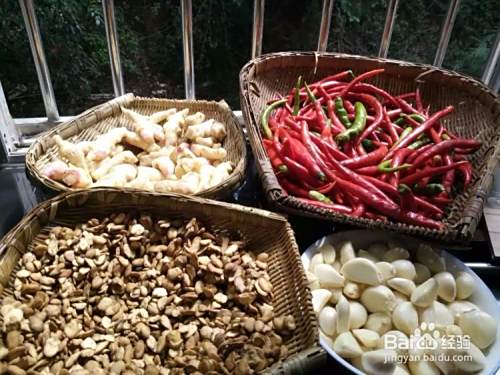 辣椒洗净晾干水分,姜洗净用盐腌制一小时左右捞出晾干水分,霉豆瓣是在市场买的,必须要洗净,在用白酒侵泡一下,在晾干水分,蒜洗净晾干