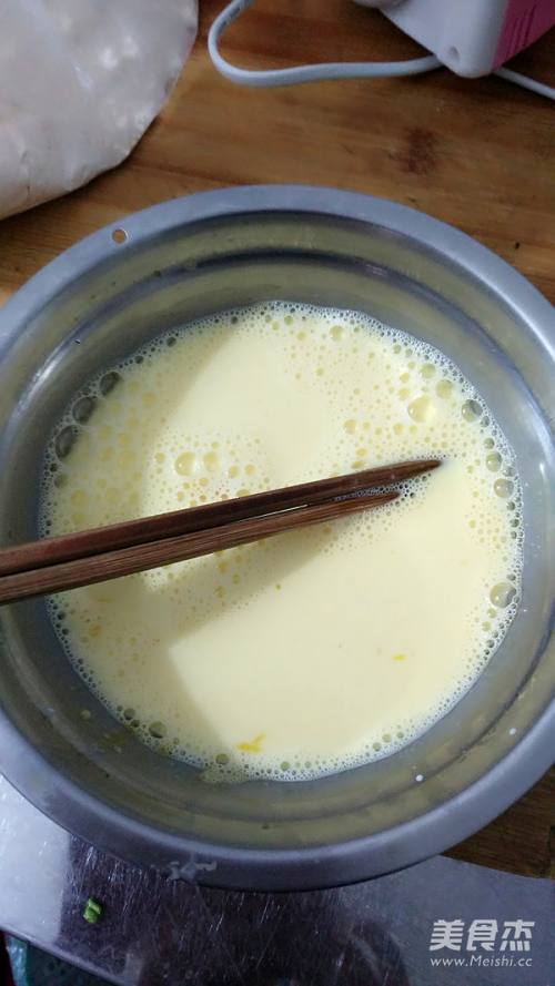 5把蛋白混入蛋黄拌匀