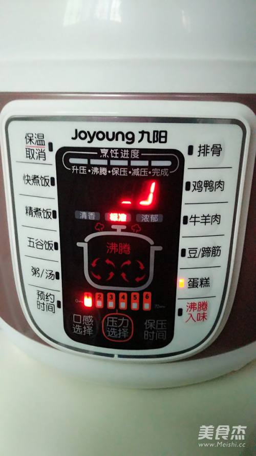 6倒入电饭煲,慢慢拍打冒小泡泡