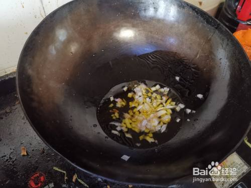 热锅冷油完成润锅后,下入食用油烧至5成油温,然后下入切好的洋葱丁,炒出葱香味