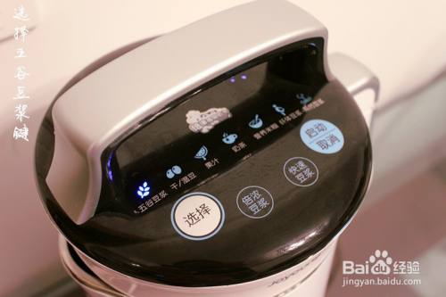 4. 盖上盖子,浸泡五分钟后选择五谷豆浆键,至其自动完成即可。