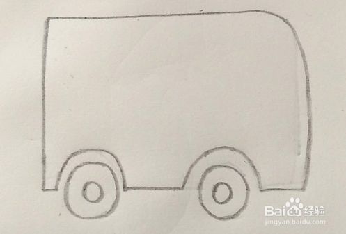 轮胎画好后,再在车身上画一个长方形,如图所示。