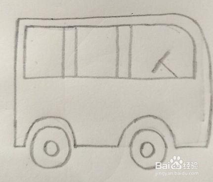 然后大家再在长方形上添加上竖线,作为公交车的车窗户和司机的驾驶座。