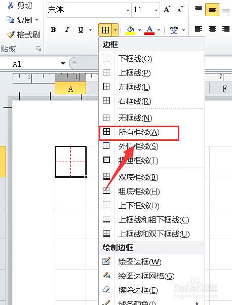 点击单元格,然后点击边框中的【所有框线】。