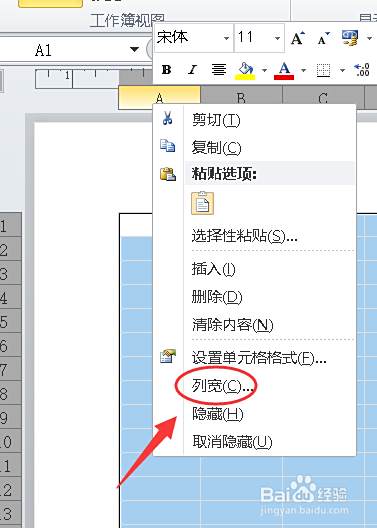 右击A列,选择【列宽】,将列宽设置为1.3cm。