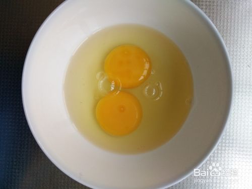 碗里打两个鸡蛋,打散。多打一会儿,打到起沫。用打蛋器打最好。