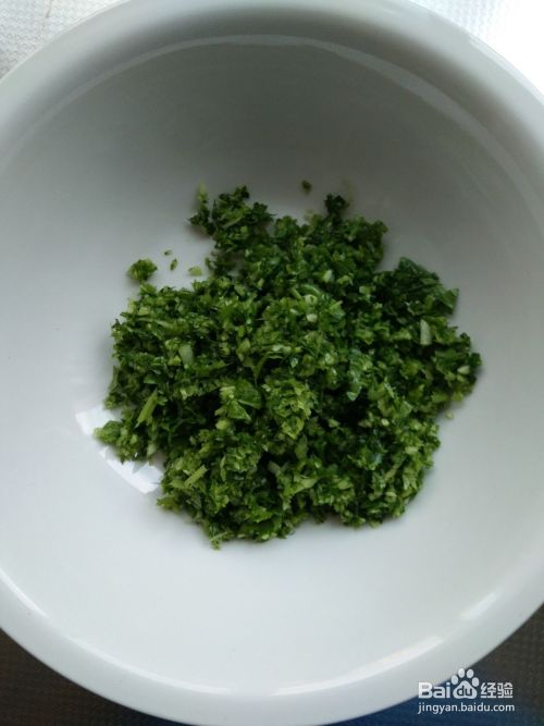 芹菜摘去杂质,洗干净,放入料理机里打成碎末备用。