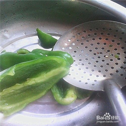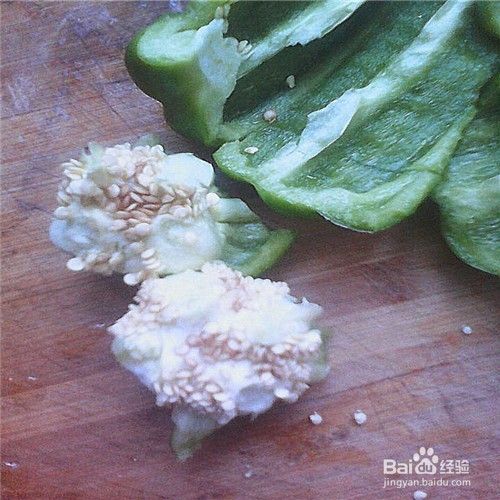 1把大辣椒洗净,掰开后取出辣椒芯籽,