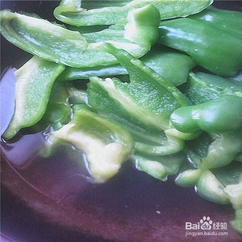 4用锅铲翻动,使大辣椒受热,烫的均匀,