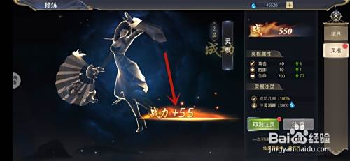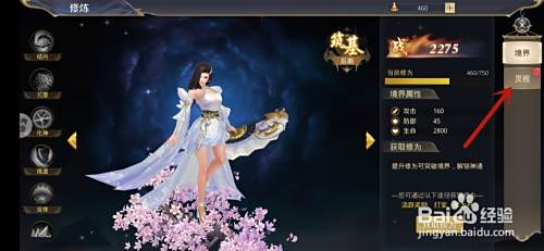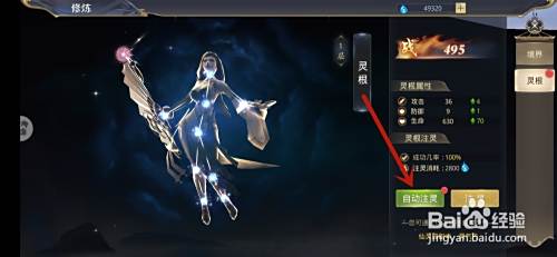 进入修炼界面后,点击【灵根】按钮,并点击它。