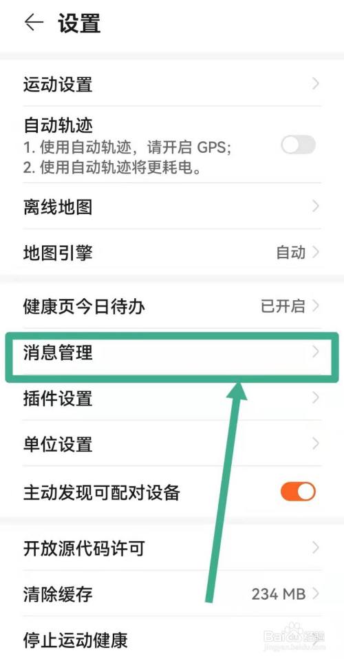 然后,找到【设置】页面下的【消息管理】选项,并点击进入。