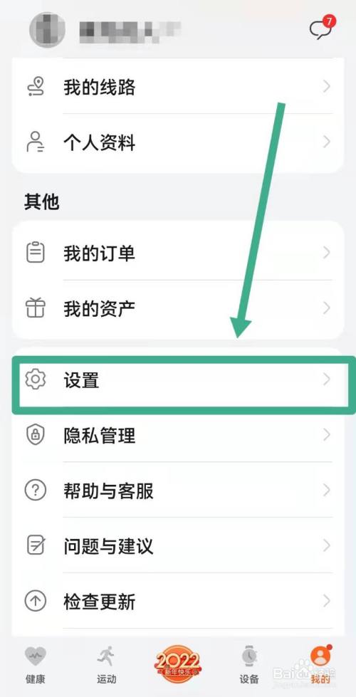 首先 ,打开【运动健康】软件,点击【我的】,再点击【设置】并进入。
