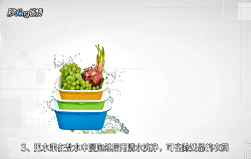 3把水果在盐水中浸泡,接着用清水洗净,可去除残留的农药,茶杯中的茶渍在清洗时放入一些食盐可清洁茶杯。