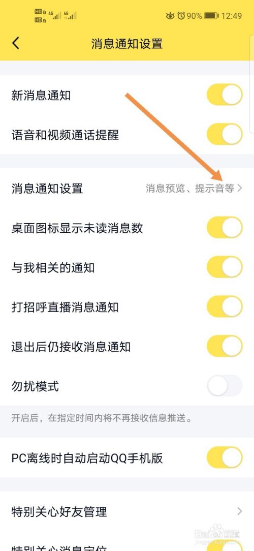 找到并点击“消息通知设置”