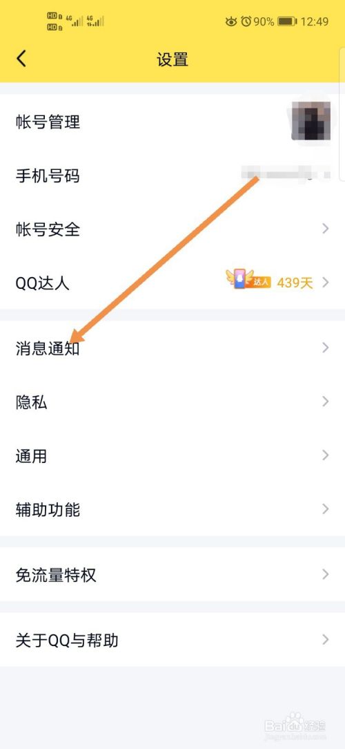 找到并点击“消息通知”