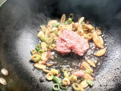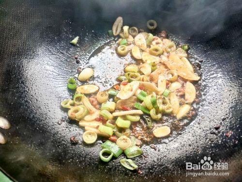 炒锅烧热,加入少许的菜籽油。油温起来后放入姜片爆香。