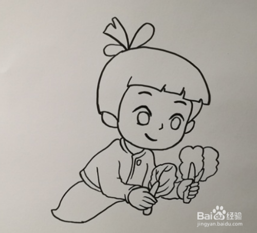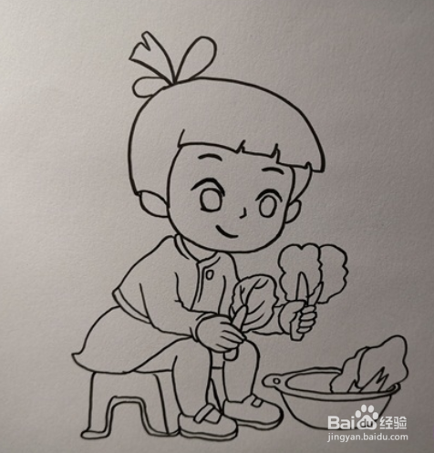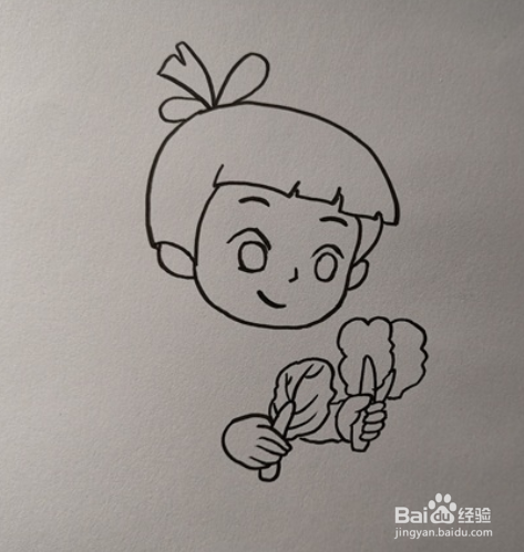 然后在身体的旁边画一个菜篮子,里面装着一些白菜。