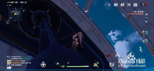 先点一下钩爪,然后长按喷气背包,将起飞高度拉到最高起飞,接着点击钩锁,瞄准墙壁最上方出钩就可以上去了。