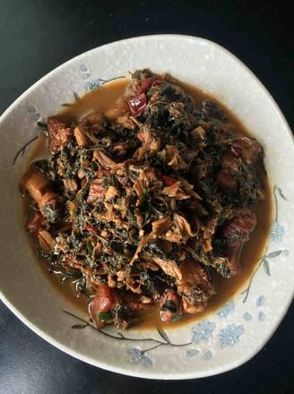 梅菜洗干净放入锅中,加入适量的清水,差不多要没过梅菜就可以了