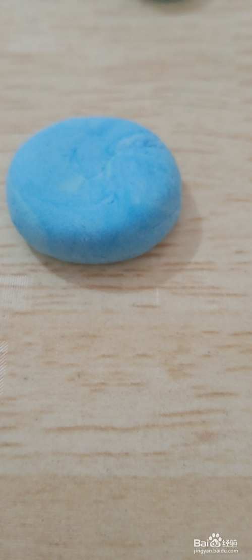 然后等粘土稍微干点后将它们组合即可,将白色的粘土放在蓝色粘土的中间,如果太薄可以多放一层哦