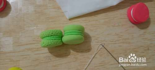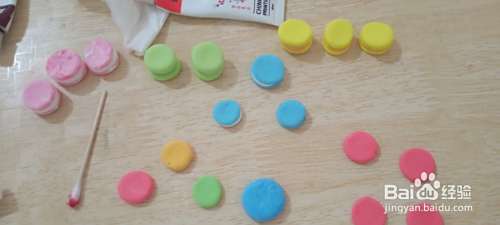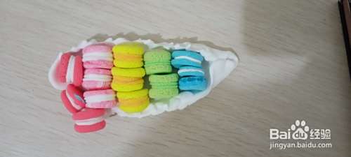 用同样的方法做出其他的马卡龙糕点,马卡龙糕点的颜色比较多,有些比较淡有些比较鲜艳,可以根据自己喜好来调和粘土的颜色