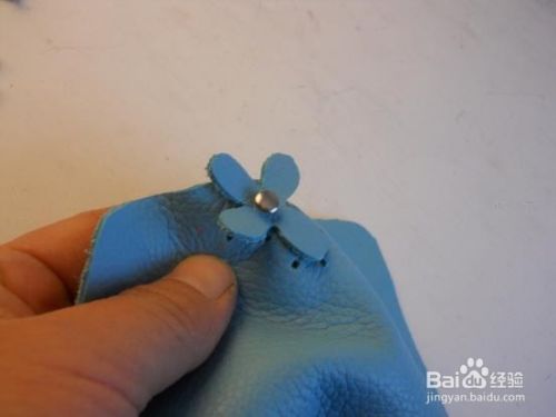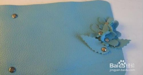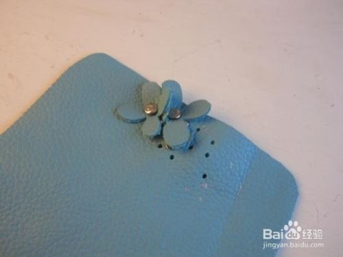 用铆钉把花朵固定在卡包上。花朵之间距离小一些,花瓣就会有立体的感觉!