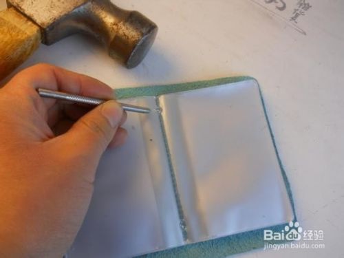 用冲子给卡包芯和皮子打孔。(用来固定卡包芯)
