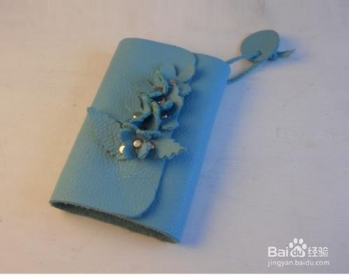 用一条细细的皮条穿过一块小圆皮子拴在卡包上做装饰。