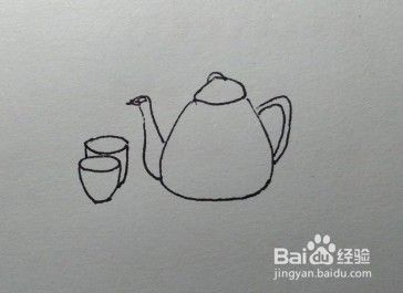 小编教你画茶壶和茶杯。