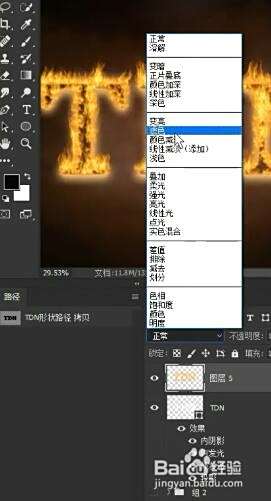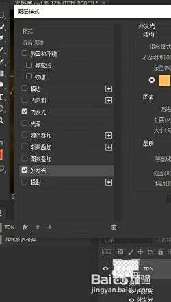 然后呢路径填充改为百分之零,双击进入图层样式,打开我们内发光跟外发光,调整你们的参数,类似于火焰的发光的效果,不用管它。