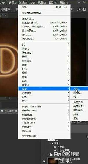 然后找到我们上面的滤镜,有个渲染,找到我们的火焰会弹出一个新的窗口。