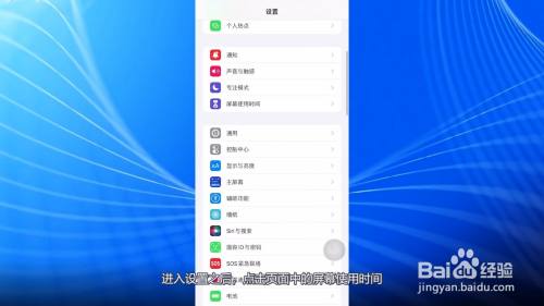 打开iPhone设置,进入设置之后,点击页面中的屏幕使用时间。