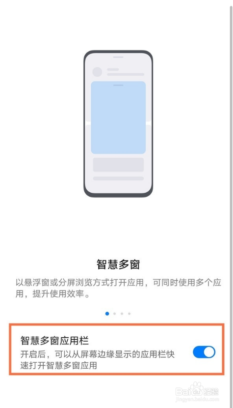 需要开启智慧多窗功能,默认为开启状态,你可以进入设置-辅助功能-智慧多窗,查看是否开启智慧多窗应用栏。