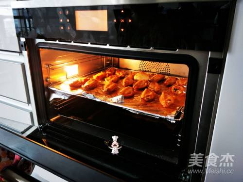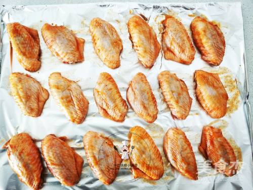 2这时的中翅腌制的恰到好处,在烤盘上放上一层锡箔纸,然后将中翅依次排放开来,中间最好有一定的间隔哦,以免在煎烤的过程中相互碰到,放好以后就可以放进烤箱,建议选择嫩烤模式或者是热风对流,烤制20-30分钟左右。