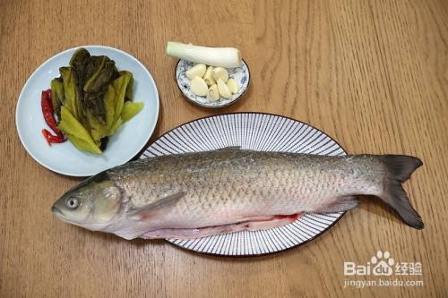首先将草鱼刮鳞去鳃去内脏,酸菜冲洗一遍攥掉多余的水,大蒜大葱小米辣准备好;