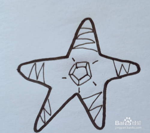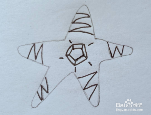 用铅笔在海星上面画上花纹,如图所示。
