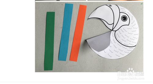 在绿,蓝,橘三色彩纸上裁剪三根长条备用