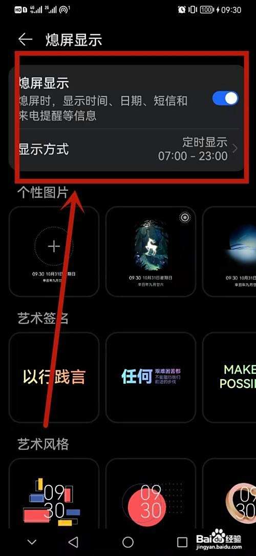 第四步:打开其右侧的按钮,熄屏显示就打开了,还可以设置想要的照片和签名等选项。