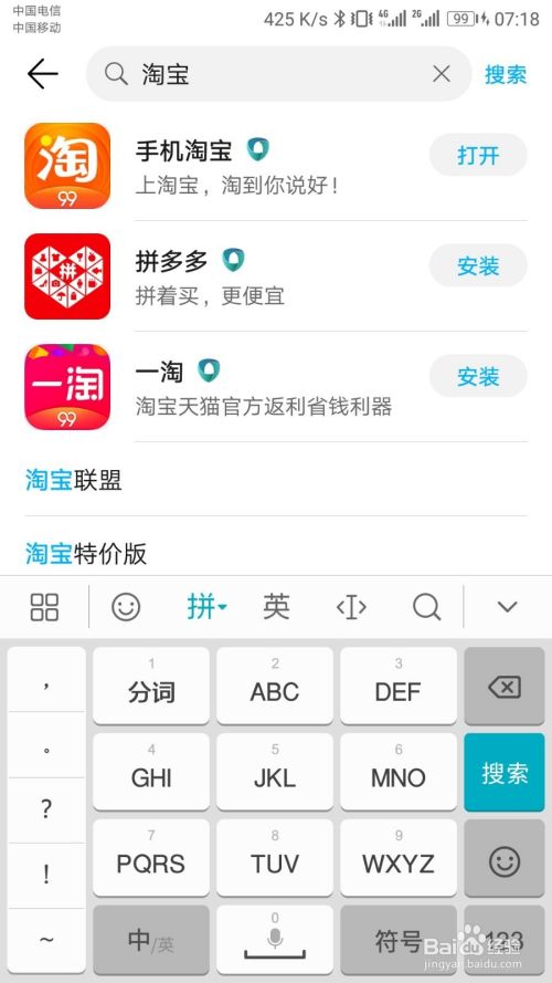 在手机app商城或者手机浏览器上搜索“淘宝”,点击下载,并且安装淘宝。