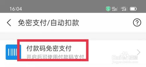 当前界面点击免密支付/自动付款,点击付款码免密支付。