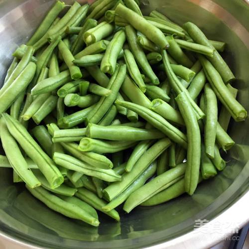 豆角切成长度差不多的小段,清洗干净,葱,蒜洗净切碎