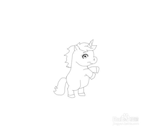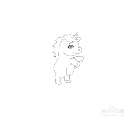 最后我们在独角兽的身体上画出独角兽的尾巴,这样小独角兽我们就画好了,如图所示: