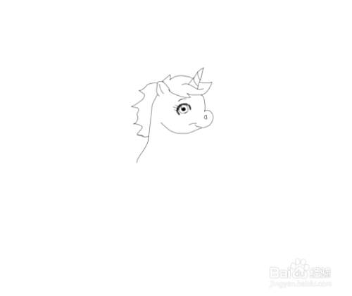 再在毛发好犄角的基础上再画出独角兽的头部和嘴巴,如图所示: