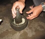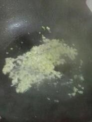 将花生油倒入锅里爆热后立即加入捣碎的蒜泥。